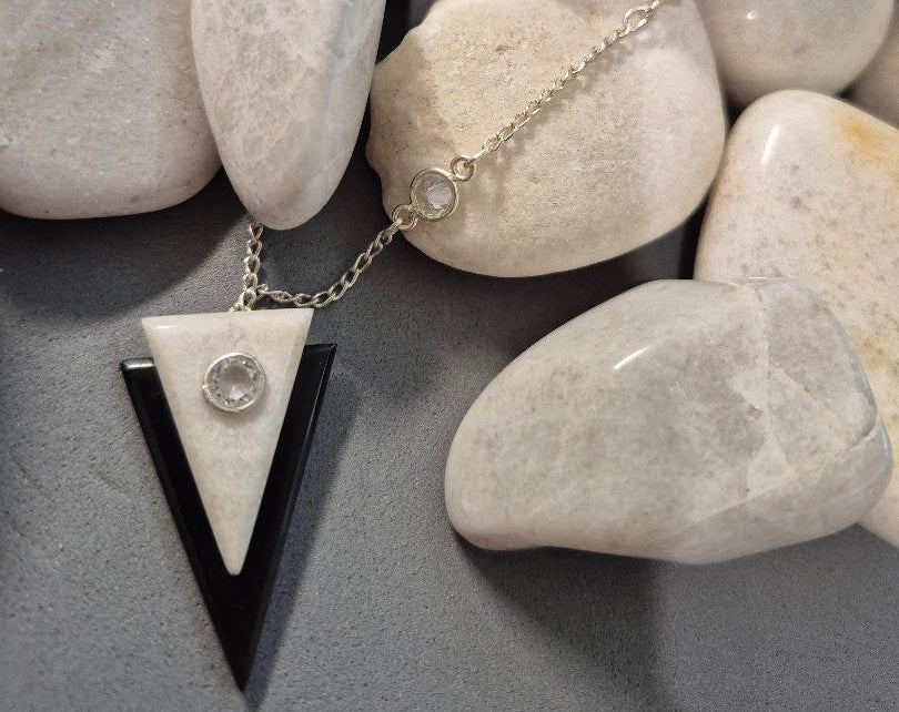 Art Deco Geometric Necklace - Sterling Silver & Crystal Design